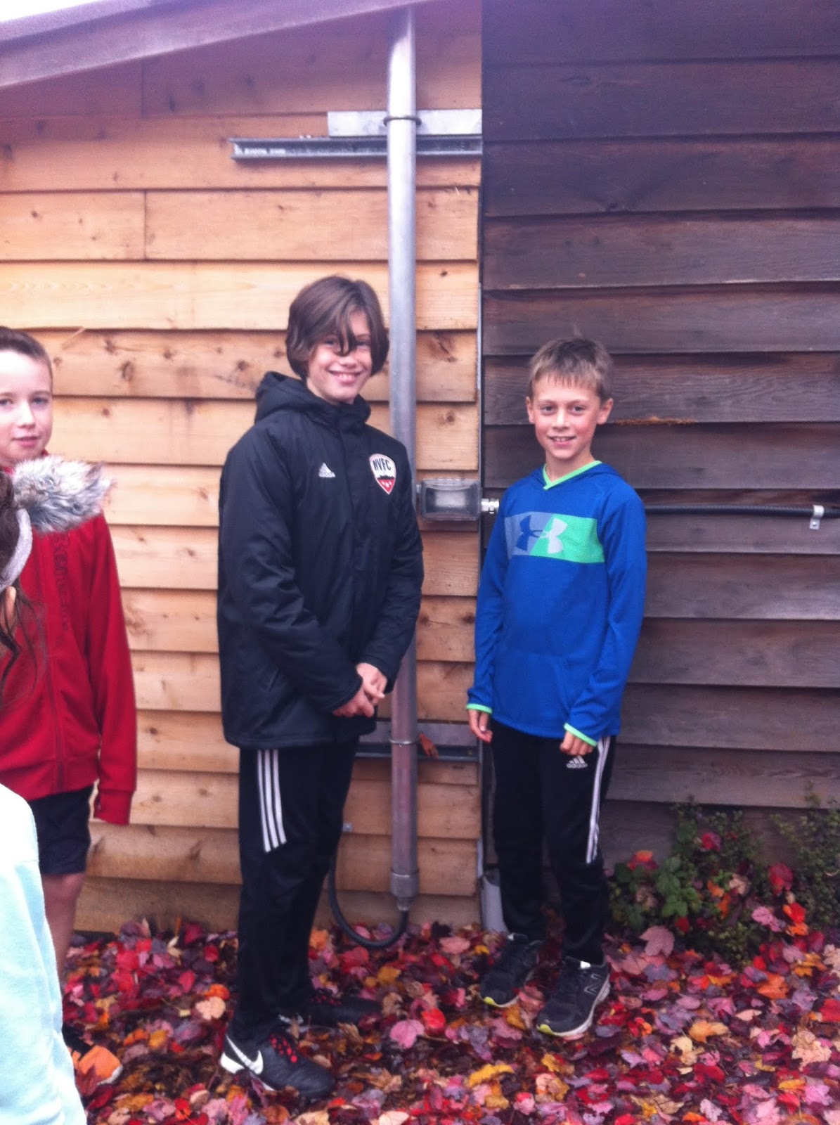 The response was encouraging! We received an email from the District of North Vancouver, a letter from the mayor of North Vancouver City, and return phone calls from BC Hydro. All were touched by the students' thoughtful letters and their compassion for Gerry. All organizations wanted to help but noted the difficulties involved. It is unclear who has jurisdiction due to the location of the garden (parts are on school property, in the city, in the district, and on BC Hydro right of way). And of course there are safety, electrical code, and liability considerations. Luke Smeaton and James Bell were determined to help, and they found a way. On Friday, an outdoor electric outlet was installed above our classroom door by Trevor Hostyn, a NVSD electrician.